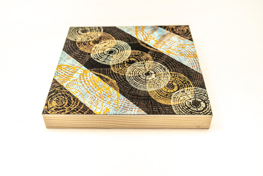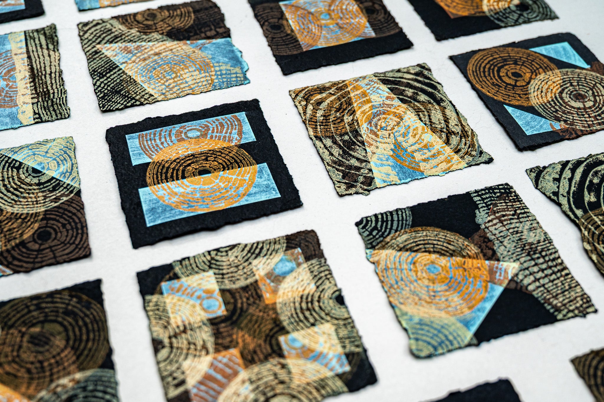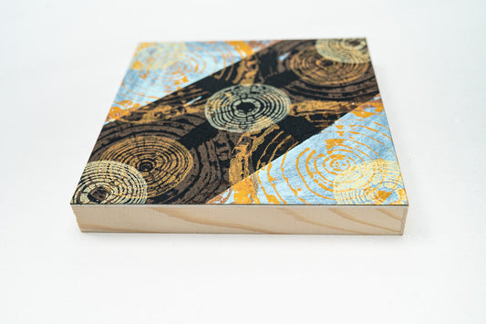Each piece in my evolving abstract series is a one-of-a-kind original monoprint, hand printed from the cross-section of downed trees. These works repurpose the natural imagery of tree rings into layered abstract compositions, merging traditional printmaking with contemporary design. Inspired by the Bauhaus art movement and folk art traditions, this collection celebrates color, form, and the enduring beauty found in nature’s patterns.