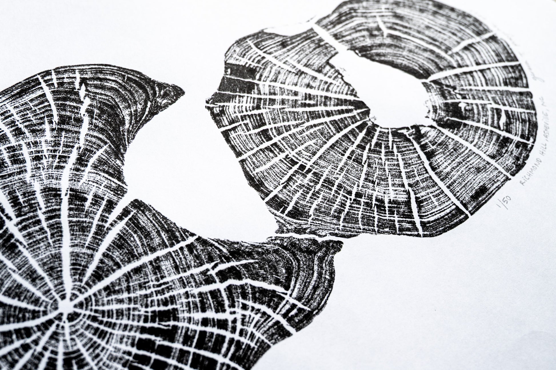Printed using black Cranfield Safe Wash ink on white Japanese Masa archival printmaking paper