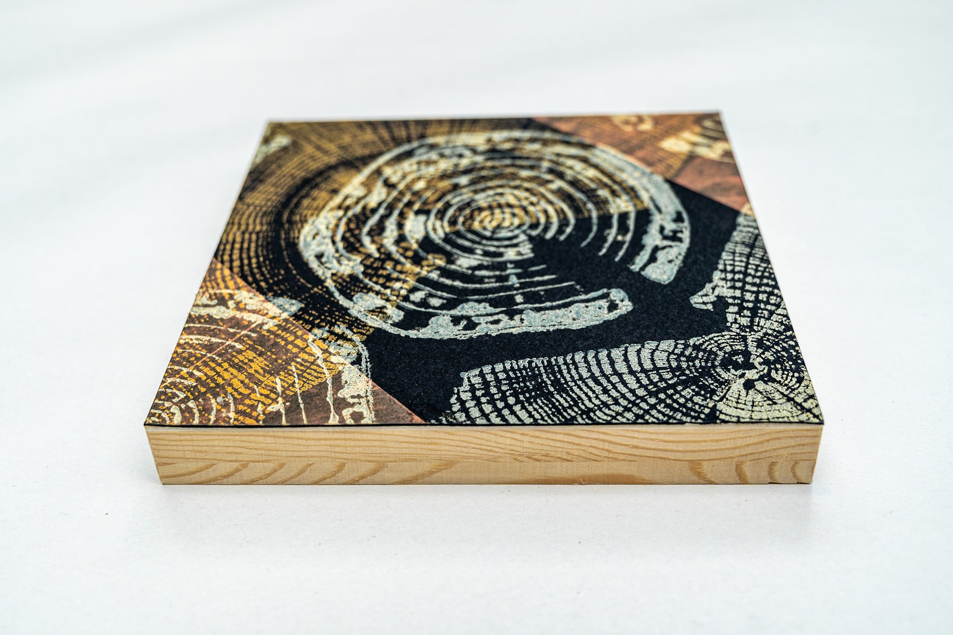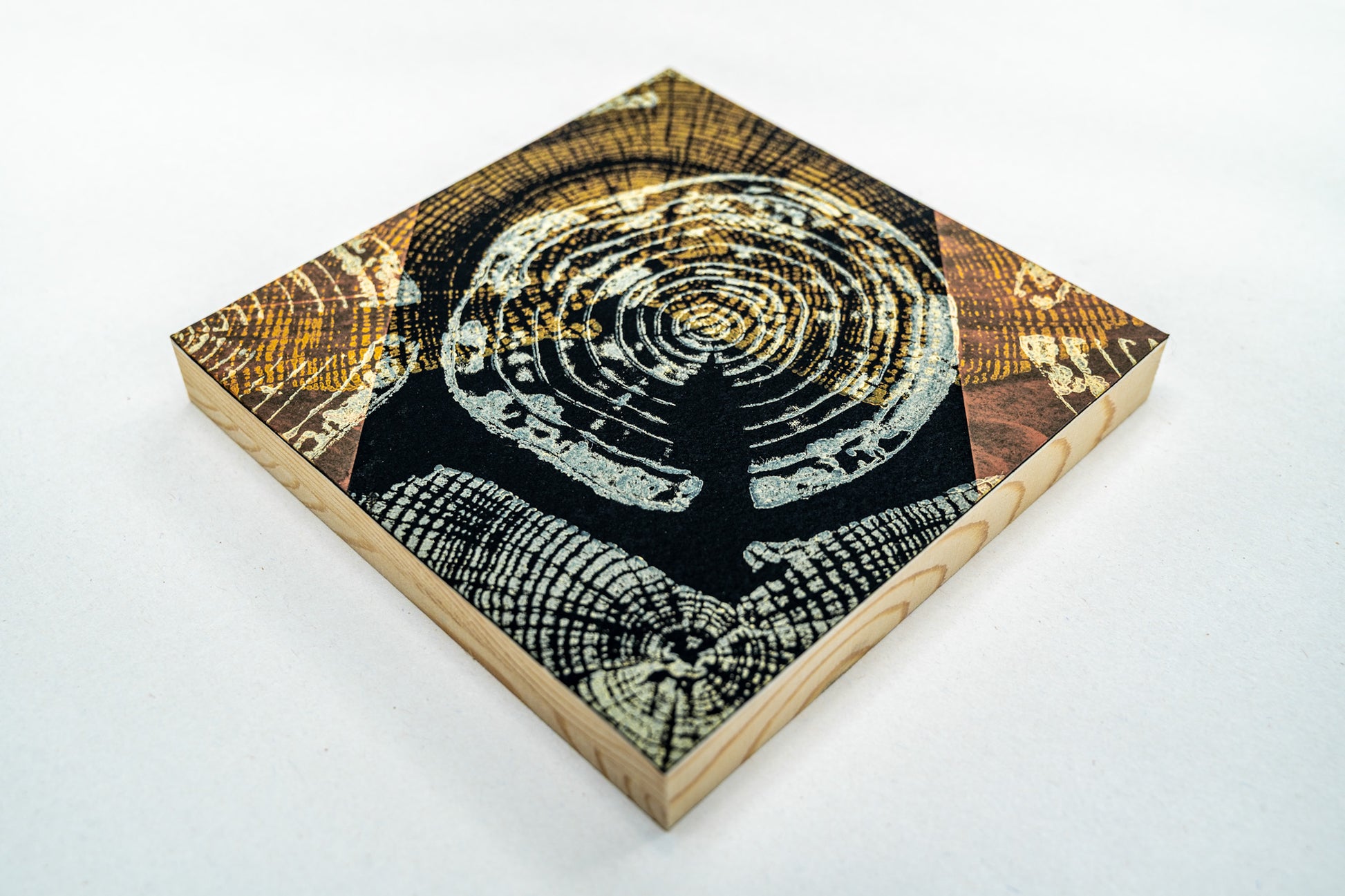 Each piece in the Summer Series is a one-of-a-kind original monoprint, hand printed from the cross-section of downed trees. These works repurpose the natural imagery of tree rings into layered abstract compositions, merging traditional printmaking with contemporary design. Inspired by the Bauhaus art movement and folk art traditions, this collection celebrates color, form, and the enduring beauty found in nature’s patterns.