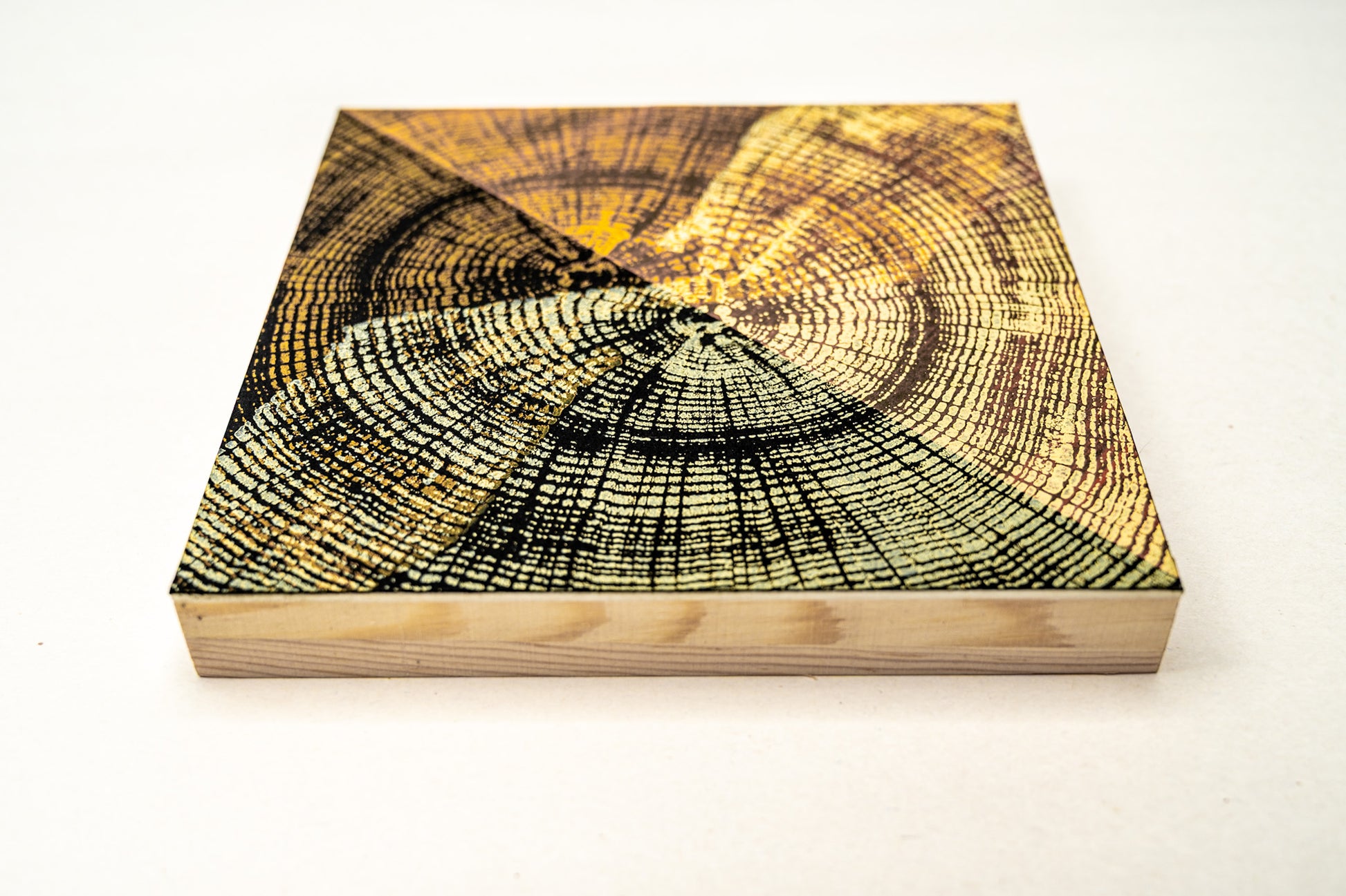 Each piece in the Summer Series is a one-of-a-kind original monoprint, hand printed from the cross-section of downed trees. These works repurpose the natural imagery of tree rings into layered abstract compositions, merging traditional printmaking with contemporary design. Inspired by the Bauhaus art movement and folk art traditions, this collection celebrates color, form, and the enduring beauty found in nature’s patterns.