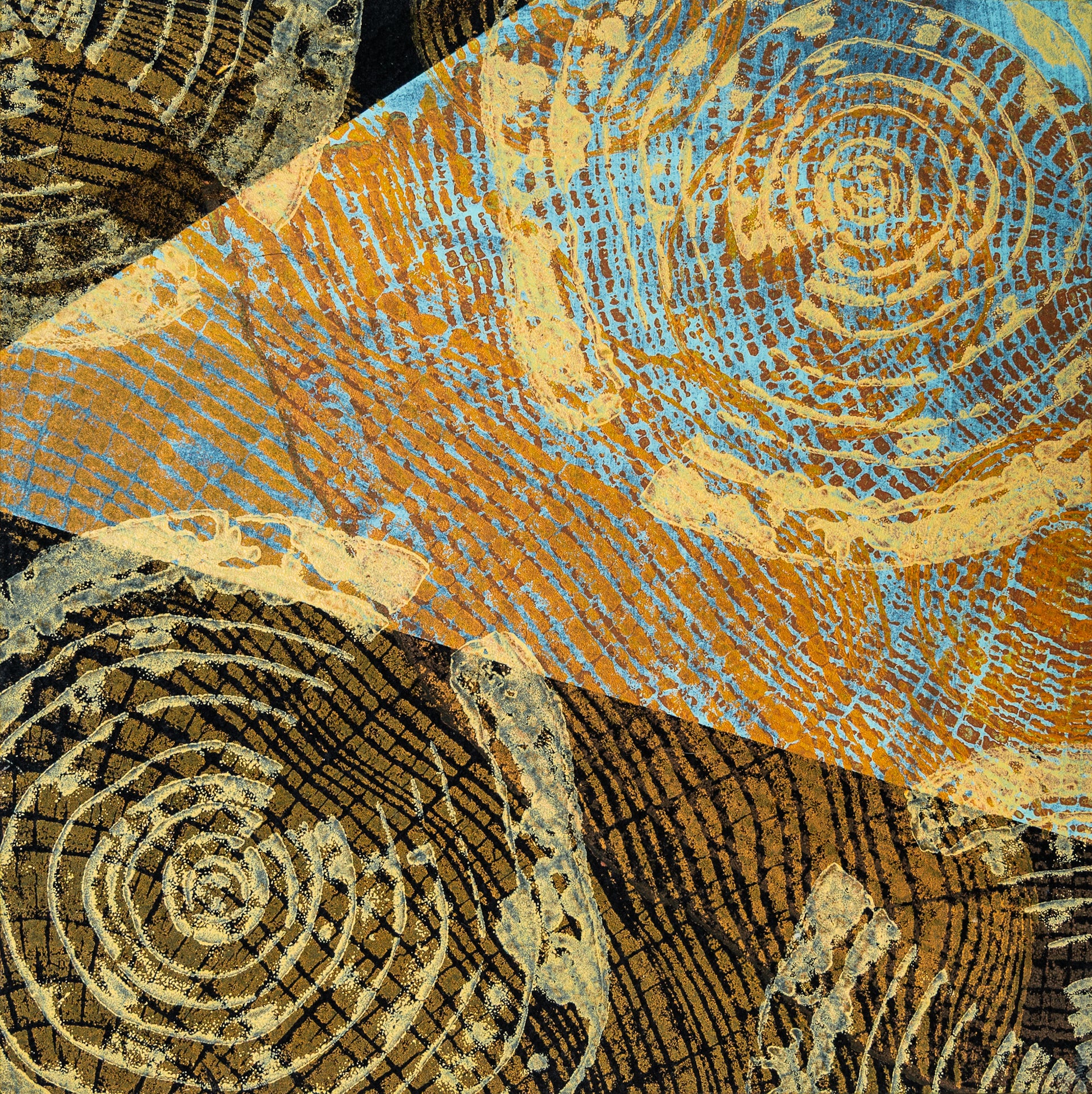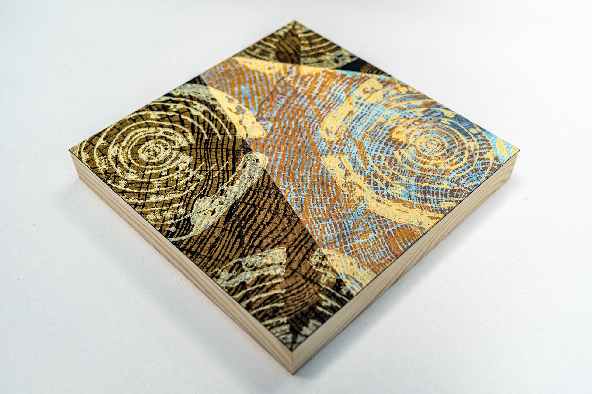 Each piece in the Summer Series is a one-of-a-kind original monoprint, hand printed from the cross-section of downed trees. These works repurpose the natural imagery of tree rings into layered abstract compositions, merging traditional printmaking with contemporary design. Inspired by the Bauhaus art movement and folk art traditions, this collection celebrates color, form, and the enduring beauty found in nature’s patterns.