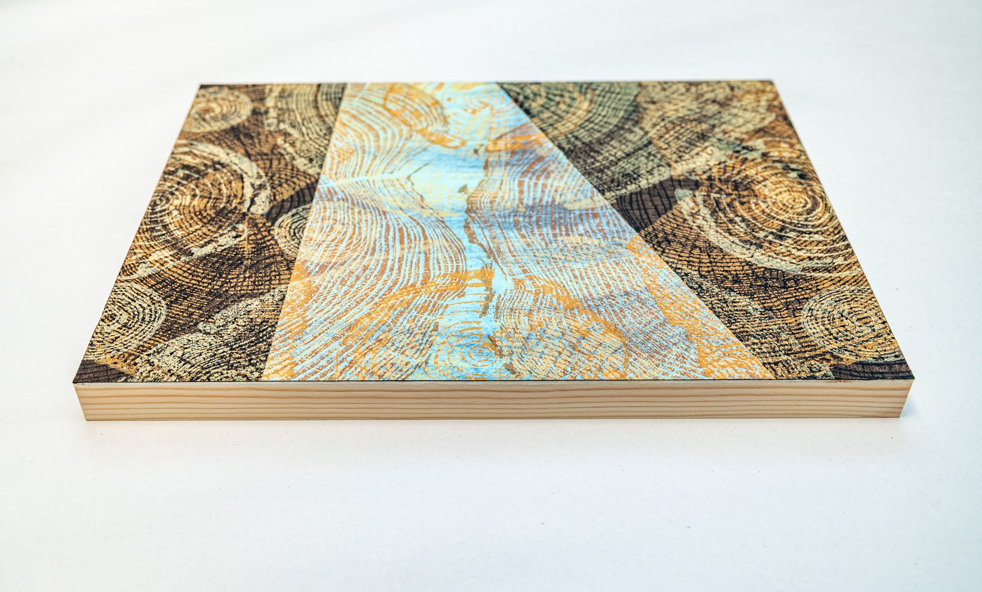 Each piece in the Summer Series is a one-of-a-kind original monoprint, hand printed from the cross-section of downed trees. These works repurpose the natural imagery of tree rings into layered abstract compositions, merging traditional printmaking with contemporary design. Inspired by the Bauhaus art movement and folk art traditions, this collection celebrates color, form, and the enduring beauty found in nature’s patterns.