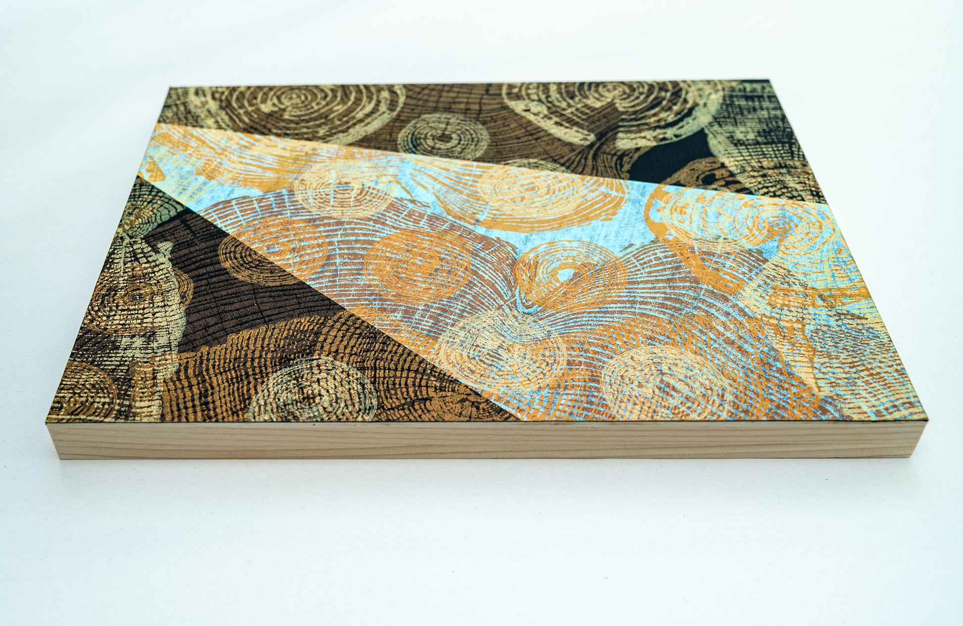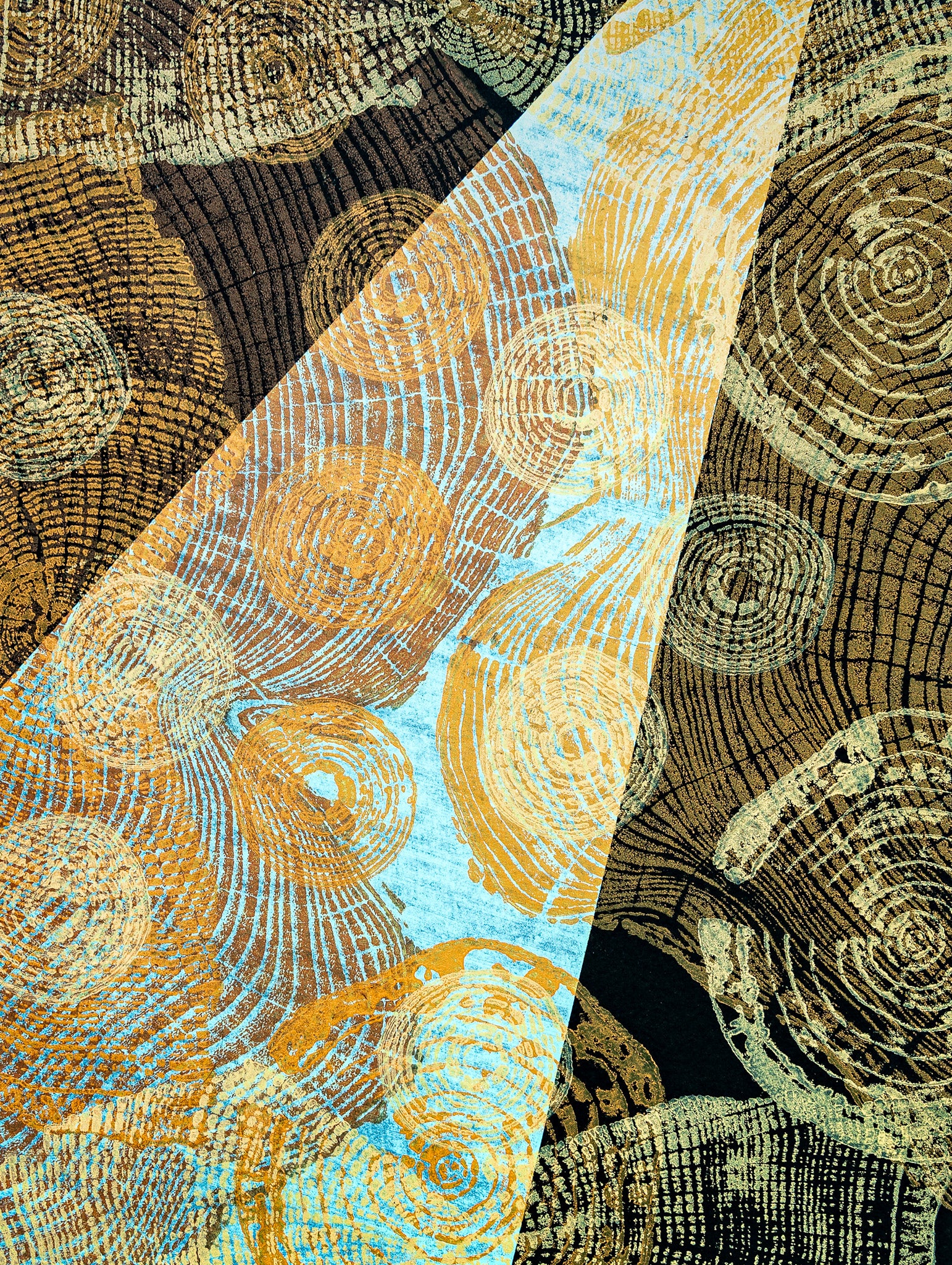 Each piece in the Summer Series is a one-of-a-kind original monoprint, hand printed from the cross-section of downed trees. These works repurpose the natural imagery of tree rings into layered abstract compositions, merging traditional printmaking with contemporary design. Inspired by the Bauhaus art movement and folk art traditions, this collection celebrates color, form, and the enduring beauty found in nature’s patterns.