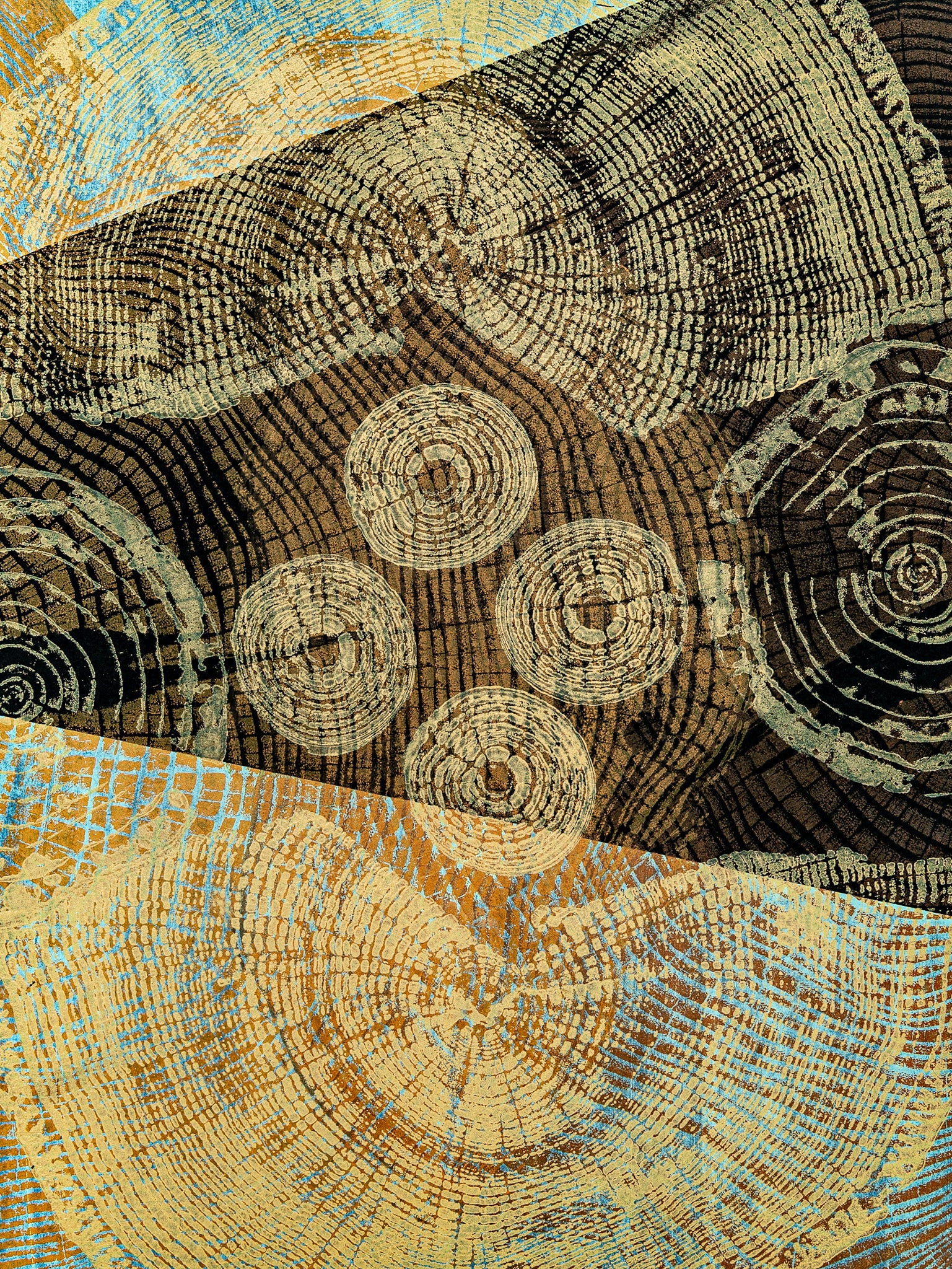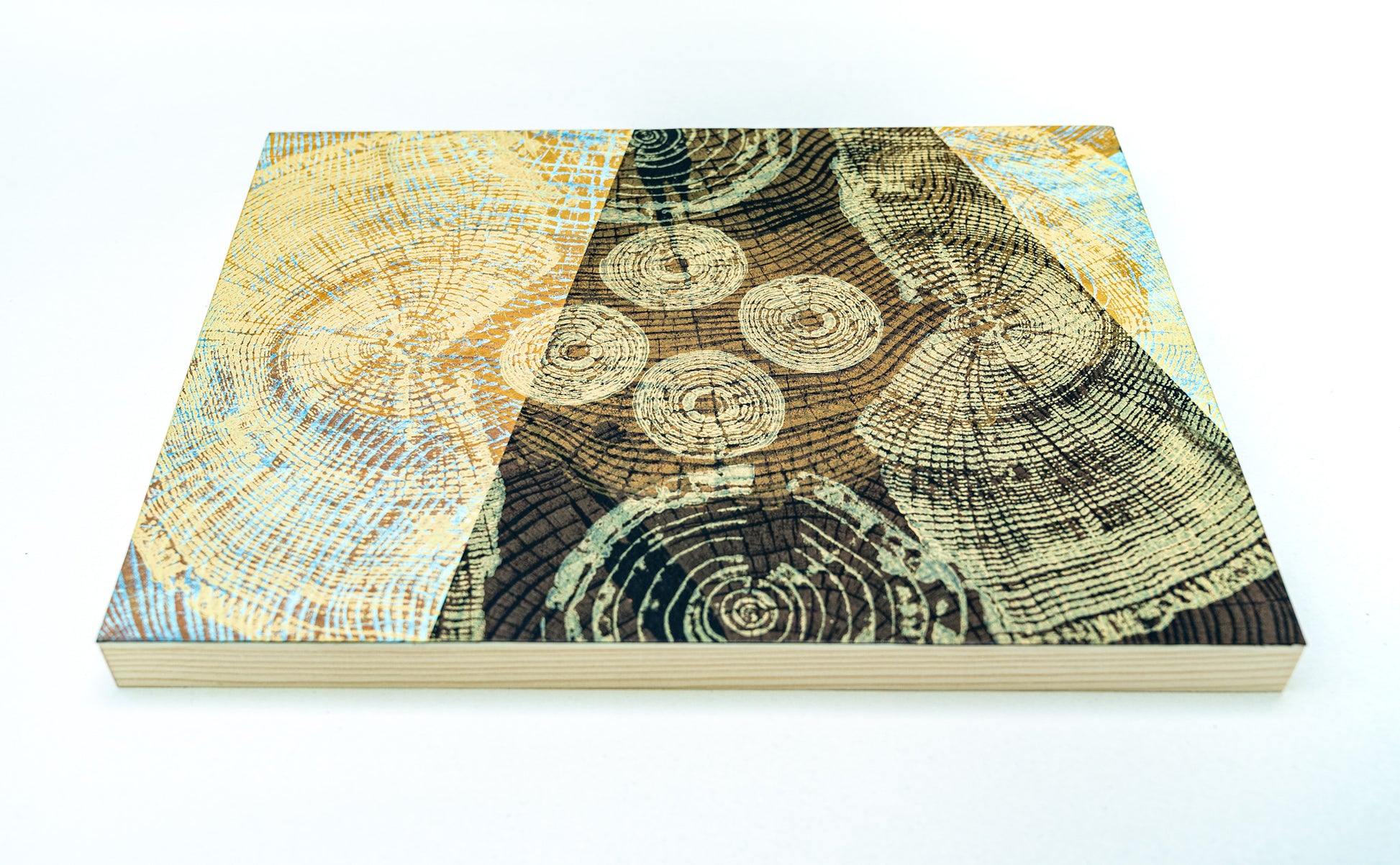 Each piece in the Summer Series is a one-of-a-kind original monoprint, hand printed from the cross-section of downed trees. These works repurpose the natural imagery of tree rings into layered abstract compositions, merging traditional printmaking with contemporary design. Inspired by the Bauhaus art movement and folk art traditions, this collection celebrates color, form, and the enduring beauty found in nature’s patterns.