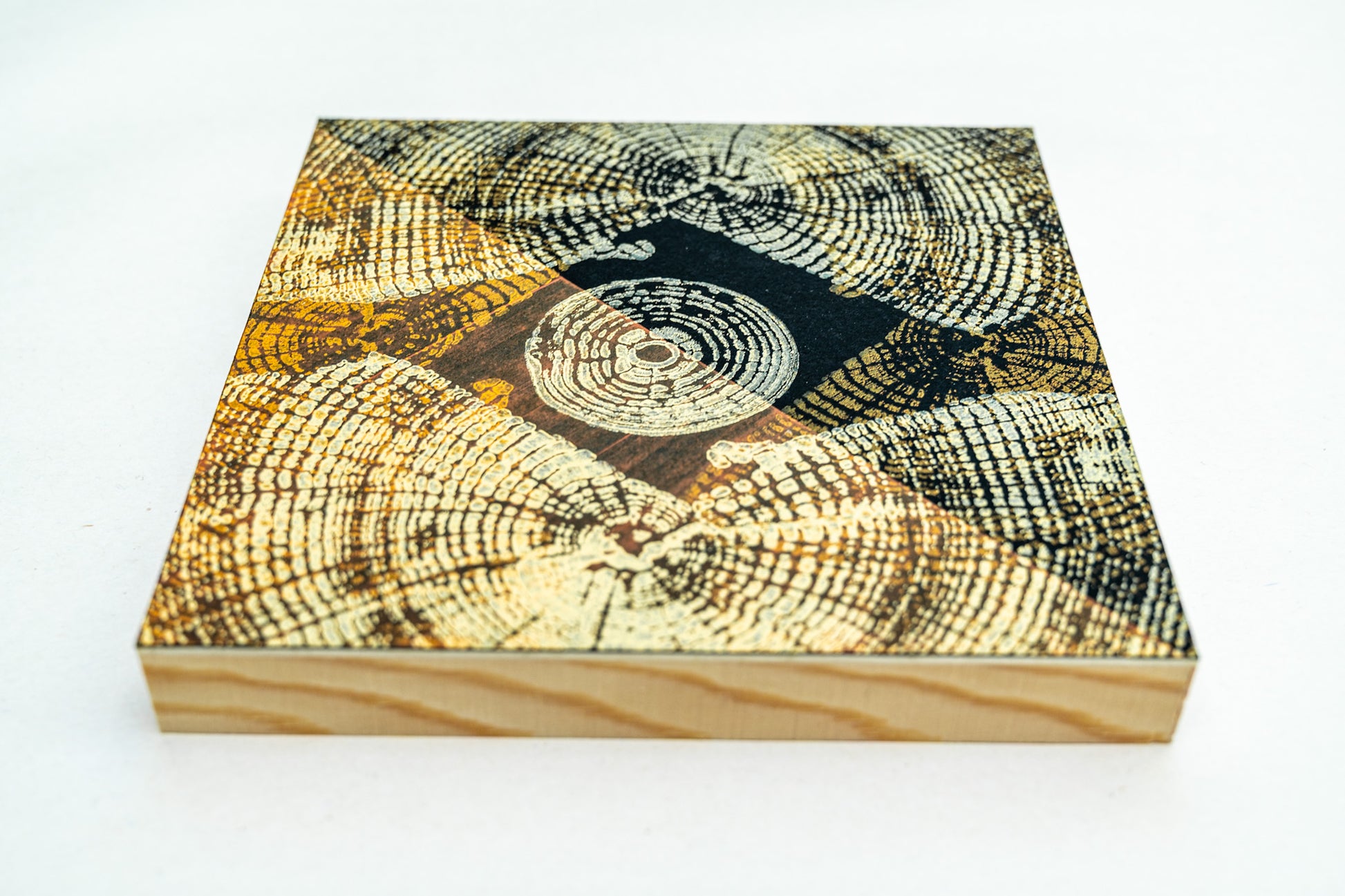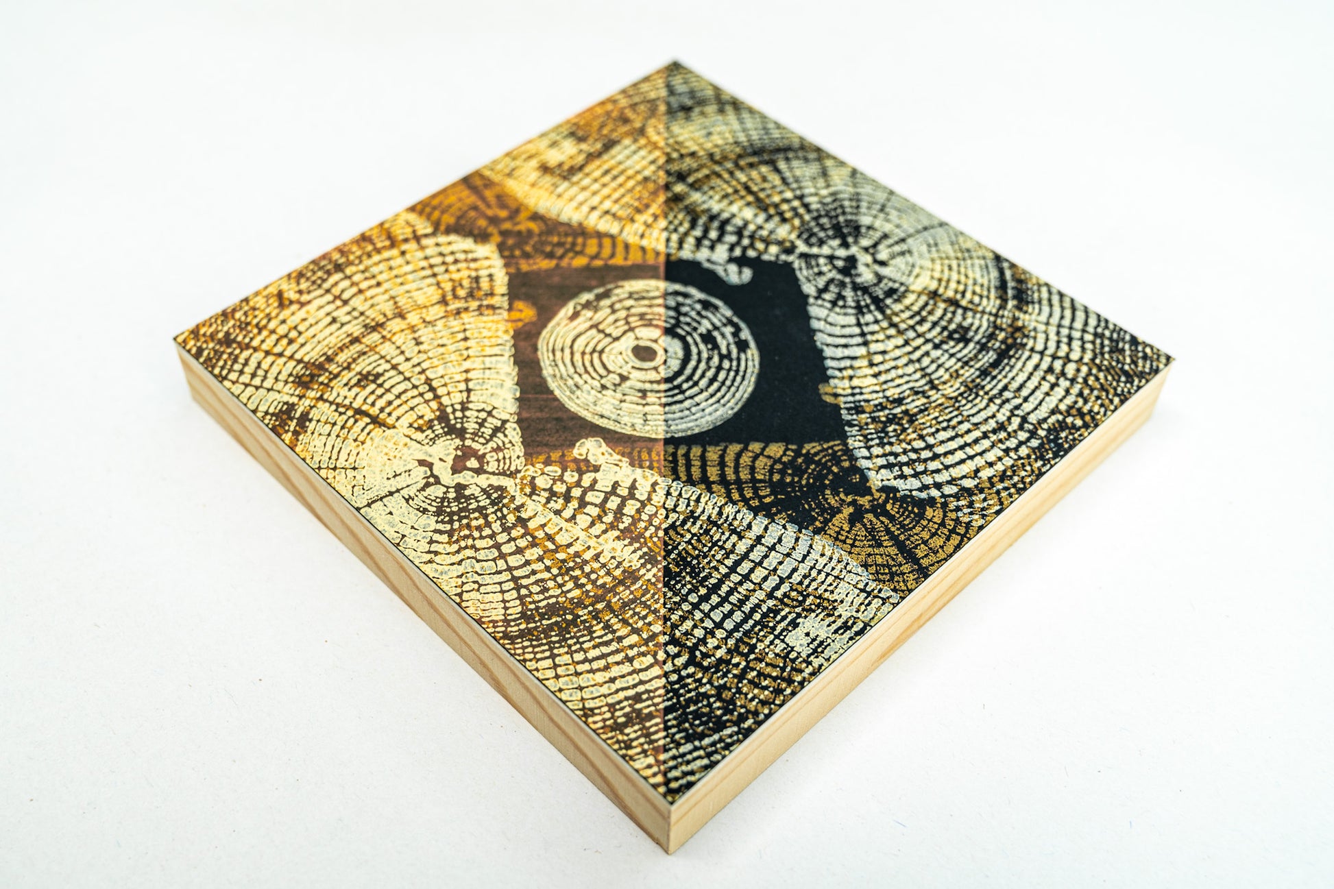 Each piece in the Summer Series is a one-of-a-kind original monoprint, hand printed from the cross-section of downed trees. These works repurpose the natural imagery of tree rings into layered abstract compositions, merging traditional printmaking with contemporary design. Inspired by the Bauhaus art movement and folk art traditions, this collection celebrates color, form, and the enduring beauty found in nature’s patterns.